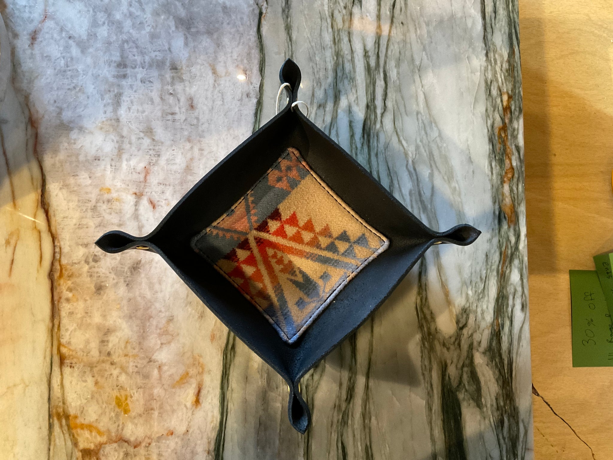 With Horween® leather and Pendleton® wool.Measures: about 5" x 5"